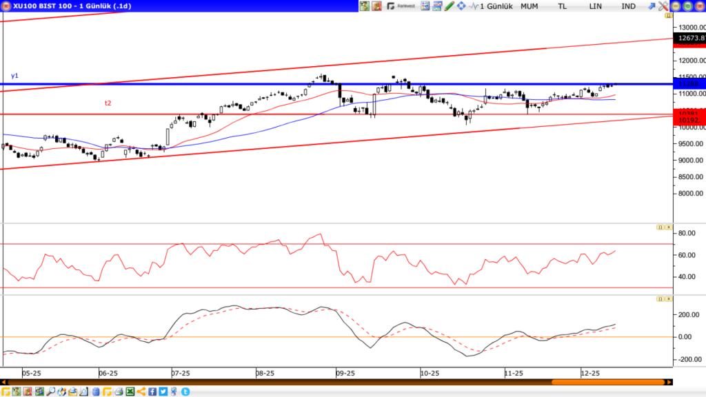Aslında Borsa için ilginç bir görüntü var. Dikkat ederseniz Endeksin satışları karşıladığını ve 10800 seviyesinin altına düşmediğini izliyoruz. Hatta son günlerde 11000 seviyesinin üzerine yerleşmeye çalıştığını izledik. Sonuç olarak tepki noktaları giderek yükseliyor. Bu pozitif ve endeksin güçlendiğini gösteriyor. İlginç olan şu, endeks her an 10800 seviyesine düşebilirim görüntüsü verirken, aynı zamanda 11400 direncini de geçebilirim görüntüsü veriyor.