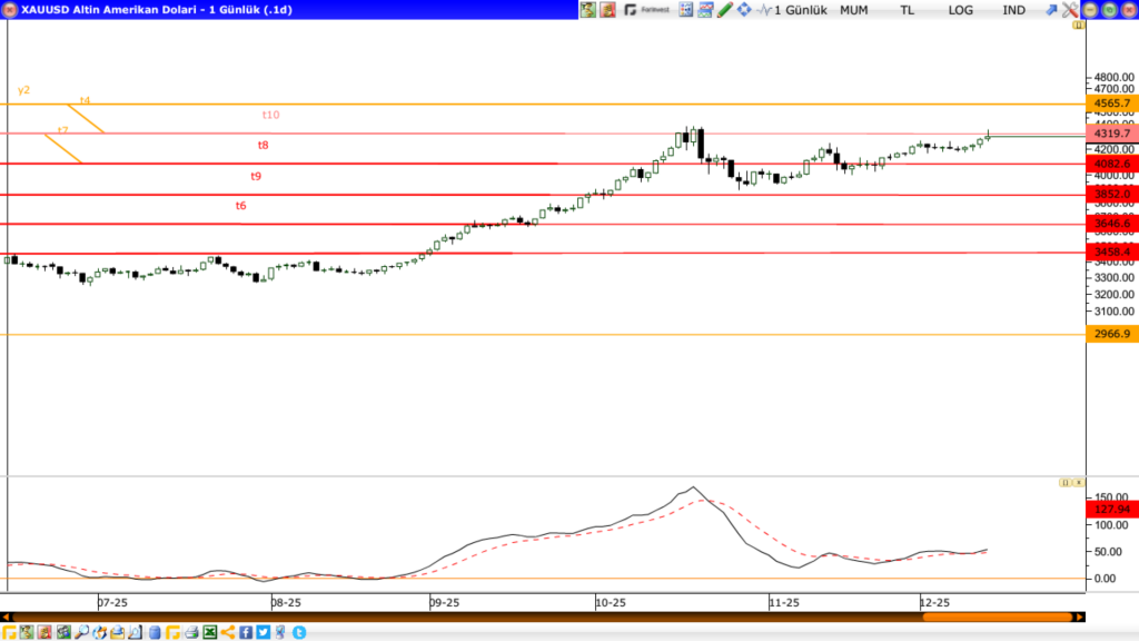 Ons 4320 direncini zorluyor. Bu seviyeyi geçerse 4565 direncine doğru yeni bir yükseliş başlatabilir. EURUSD paritesindeki yukarı hareket Altın için yukarı yönlü baskı yaratıyor. Trend güçleniyor. 4320 direnci önemli. 4082 desteğine gerileme olursa alım için fırsat olacaktır.