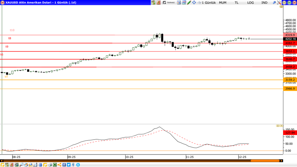 Ons Altın 4080-4320 arasında sıkışık yatay hareket ediyor. Mevcut durumda hiçbir sinyal yok. Dolar endeksindeki gerileme Altını desteklerken, Rusya Ukrayna görüşmeleri aşağı baskı yaratıyor. İkisi sanki birbirini nötrlemiş gibi duruyor. Altında 4320 direncini kırması durumunda anlamlı bir yükselişten söz edebiliriz. Ayrıca 4080 desteği önemli destek.