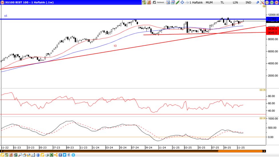 Diğer yandan, gelecek hafta Perşembe günü TCMB faiz kararı var. Beklentiler 150bps puana doğru kaymış durumda. Ancak 100bps indirim bekleyenlerde az değil. Sonuç olarak en az 100bps faiz indirimi beklentisi cepte gibi. Aslında önemli olan konunun TCMB’nin faiz indirimlerine devam etmesi olduğunu sürekli söylüyorum. Bu süreç ağır aksak da olsa devam ediyor. 2026 yılında da faiz indiriminin devam etmesi ana senaryomuz. Buradaki en büyük risk, TCMB’nin gereğinden fazla ve hızlı indirim yapması olacaktır.