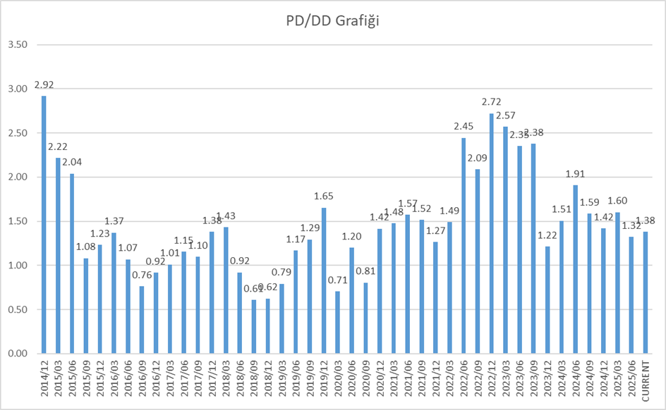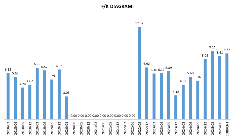 Dönem sonu itibari ile PGSUS’un 2.700mn € (137.7 milyar TL) net borcu mevcut. 2024 yıı sonunda net borç 2.749mn€ (109 milyar TL) seviyesindeydi. Euro bazında düşmüş ancak kur artışından dolayı TL bazında artış var. Net Borç/ FAVÖK oranı 3.99x seviyesinde. Bu yüksek bir oran. Şirket’in serbest nakit akışı bu dönemde pozitif 8.638 mn TL oldu. PGSUS genel olarak pozitif nakit akışı üreten bir şirket. 9 ve 12 aylık bilanço dönemlerinde nakit akışları en yüksek seviyede gerçekleşiyor.