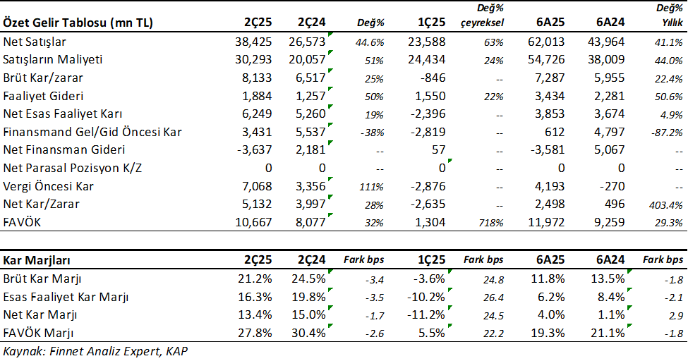 FAVÖK beklentilere paralel %32 artışla 10.667mn TL oldu. FAVÖK marjı 2.6 puan düşüşle %27.8 seviyesinde. Marj düşüşünde Faaliyet kar marjındaki düşüş etkili oldu.