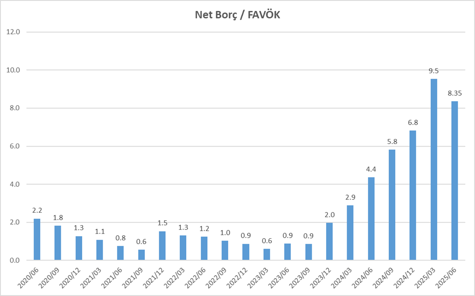 Net borç 112.547mnTL seviyesine ulaştı. 2024 sonunda 86.100mnTL düzeyindeydi. %30 net borç artışı olumsuz okuduğum nokta. Zorlu ekonomik şartlar, negatif serbest nakit akışları borçlanmayı artırıyor. Geleek dönemlerde FAVÖK’deki artışın devam etmesi ile Şirket borç ödeyicisi konumuna geçebilir. Ancak şimdi net borç / FAVÖK oranı 8.35x seviyesinde ve bu korkunç bir seviye. SISE bununla baş edecek güçte bir şirket. Ancak bu oranın gelecek dönemlerde düştüğünü görmemiz gerek. Faizlerdeki gerileme ve FAVÖK’deki artışın devamı durumunda bu oranda düşüşü göreceğimizi düşünüyorum.