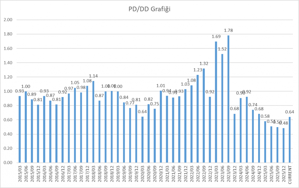 Hisse 0.64x pd/dd çarpanı ile işlem görmekte. Grafikten göreceğiniz gibi 2014 yılından bu yana düşük seviyelerde. Hissedeki son çıkış ile 0.48x seviyesinden bir miktar yükseldi. Özsermaye değerine göre bu seviyelerin uzun vadeli pozisyon için uygun noktalar olduğunu söylemek zor değil. Ancak sabırlı yatırımcı olanlar için bu geçerli.