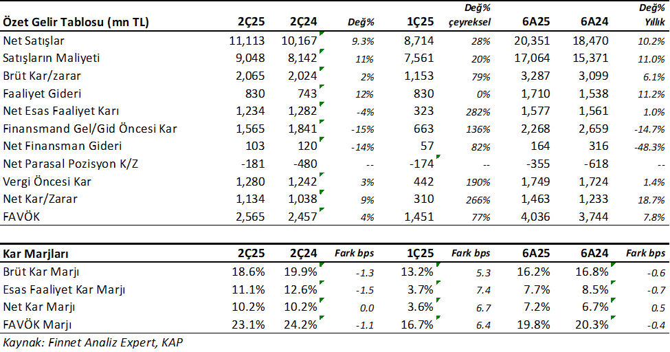 2025 yılı FAVÖK beklentisini ise 8-8.2 milyar TL’den 8.2-8.4 milyar TL seviyesine yukarı revize etti.